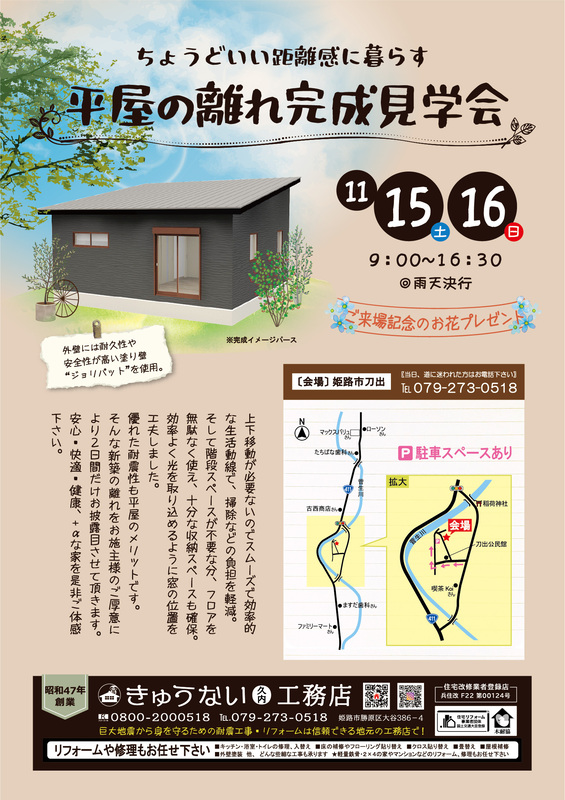 平屋の離れ完成見学会 開催!
